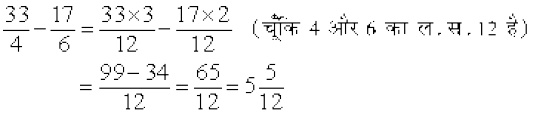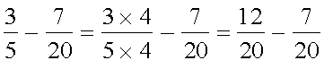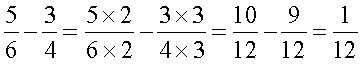 असमान भिन्न हैं, इसलिए घटाने के लिए पहले हम इन्हें समान हरों वाली भिन्नों में बदलते हैं।  और