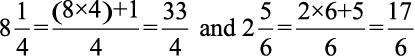 हल	:	पूर्ण संख्या 4 और 2 तथा भिन्नात्मक संख्या  और