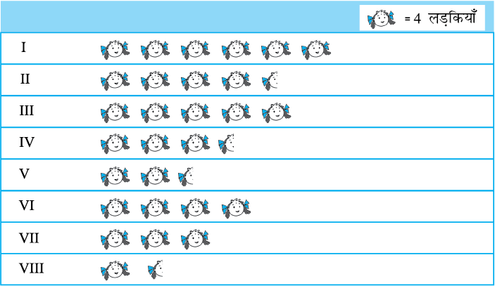 (b) बृहस्पतिवार की पंक्ति में कोई चित्र नहीं है। इसका अर्थ है कि इस दिन कोई विद्यार्थी अनुपस्थित नहीं था। अर्थात् उस दिन कक्षा में पूर्ण उपस्थिति रही।