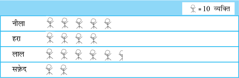 हल : (a) नीला रंग पसंद करने वाले 50 व्यक्ति हैं?
