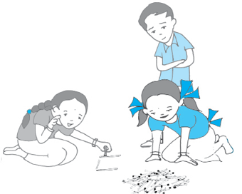 तभी उनका मित्र अप्पू आ जाता है। वह इस प्रतिरूप को देखता है। अप्पू सदैव प्रश्न पूछता रहता है। वह इन लड़कियों से पूछता है, ‘‘सात L बनाने के लिए कितनी तीलियों की आवश्यकता पड़ेगी?’’ अमीना और सरिता सुचारु रूप से कार्य करती हैं। वे 1 L, 2 L, 3 L इत्यादि से प्रतिरूप बनाती रहती हैं और एक सारणी बनाती हैं: