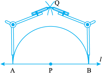 14.4.1 एक दी हुई रेखा पर स्थित एक बिंदु से होकर लंब खींचना