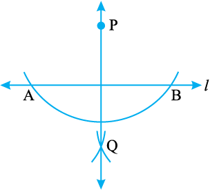 और  के लंब समद्विभाजक खींचिए। मान लीजिए ये P पर प्रतिच्छेद करते हैं क्या PA = PB है?