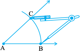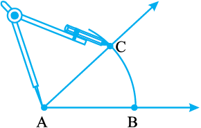 (vii) दिए हुए कोण के बराबर कोण बनाना।