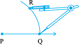 चरण 6 PR को मिलाकर किरण PR बनाइए। इससे ∠P प्राप्त होता है। ∠P ही वांछित कोण है जिसका माप ∠A के बराबर है। इसका अर्थ है कि∠QPR और ∠BAC के माप बराबर हैं।