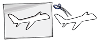 अब वही कागज़ का टुकड़ा लीजिए जिसे क्रियाकलाप 2 में आपने प्रयोग किया है। उसके ऊपर एक हवाई जहाज़ का रेखाचित्र बनाइए तथा उसे बाहरी रेखा के साथ-साथ काटिए (चित्र 6.4)।