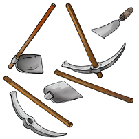 इन औज़ारों में लोहे के फलक में एक वलय होता है जिसमें लकड़ी के हत्थे को फंसा दिया जाता है। साधारणतया इस वलय का आमाप लकड़ी के हत्थे के घेरे से थोड़ा छोटा होता है। हत्थे को वलय में फंसाने के लिए वलय को गर्म करते हैं जिससे उसका आकार बड़ा हो जाता है (फैल जाता है)। अब हत्था आसानी से इसमें जड़ दिया जाता है। जब वलय ठंडा होता है तो सिकुड़ जाता है जिससे यह हत्थे पर कस जाता है।