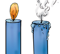 एक छोटी मोमबत्ती लेकर उसकी लंबाई स्केल से मापें। इसे एक उचित स्थान पर लगाकर जलाएँ। कुछ समय तक इसे जलने दें। मोमबत्ती को बुझा दें तथा पुनः उसकी लंबाई मापें (चित्र 6.8)।