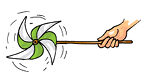 फिरकी की डंडी को पकड़िए और उसे एक खुले क्षेत्र में भिन्न-भिन्न दिशाओं में रखिए। इसे थोड़ा आगे-पीछे कीजिए। देखिए, क्या होता है? क्या फिरकी घूमती है? फिरकी को कौन घुमाता है? क्या इसे वायु नहीं घुमा रही है?