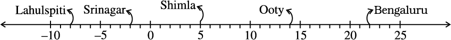 1. Following number line shows the temperature in degree celsius (°C) at different places on a particular day.