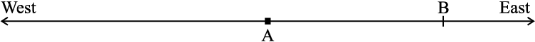6. Rita goes 20 km towards east from a point A to the point B. From B, she moves 30 km towards west along the same road. If the distance towards east is represented by a positive integer then, how will you represent the distance travelled towards west? By which integer will you represent her final position from A?