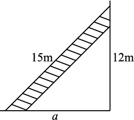 3. A 15 m long ladder reached a window 12 m high from the ground on placing it against a wall at a distance a. Find the distance of the foot of the ladder from the wall.