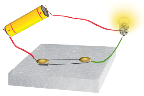 आपने कक्षा 6 के अध्याय 12 में सुझाए गए खेल "आपका हाथ कितना स्थिर है?" को खेलने का प्रयास किया होगा। यदि नहीं, तो अब आप इसे करके देखिए। बूझो तथा पहेली ने भी कक्षा 6 में सुझाए अनुसार खेल के लिए एक विद्युत परिपथ संयोजित किया। उन्होंने अपने परिवार और मित्रों के साथ परीक्षण करके काफ़ी मनोरंजन किया। उन्हें इस खेल में इतना आनन्द आया कि उन्होंने यह निश्चय किया कि वे दूसरे शहर में रहने वाले चचेरे भाई को इस खेल को खेलने का सुझाव देंगे। अतः पहेली ने एक स्वच्छ चित्र बनाया और उसमें यह दर्शाया कि विविध विद्युत अवयवों को कैसे संयोजित किया जाना है (चित्र 14.1)।