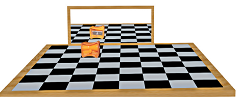 शतरंज का एक बोर्ड (चेसबोर्ड) लीजिए। यदि चेसबोर्ड उपलब्ध न हो तो एक चार्ट पेपर पर समान साइज़ के 64 वर्ग बनाइए। पेपर के मध्य में एक मोटी रेखा खींचिए। इस रेखा पर एक समतल दर्पण को ऊर्ध्वाधर रखिए। दर्पण के सामने तीसरे वर्ग की सीमा पर कोई छोटी वस्तु, जैसे–पेंसिल, शार्पनर रखिए (चित्र 15.7)। दर्पण में इसके प्रतिबिंब की स्थिति नोट कीजिए। अब वस्तु को चौथे वर्ग की सीमा पर रखिए। फिर से दर्पण में प्रतिबिंब की स्थिति नोट कीजिए। क्या आप दर्पण से प्रतिबिंब की दूरी तथा दर्पण के सामने रखे बिंब की दूरी में कोई संबंध पाते हैं?