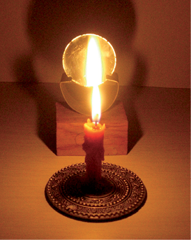 चित्र 15.33 पानी में जलती मोमबत्ती