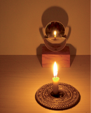 एक समतल दर्पण के सामने एक जलती हुई मोमबत्ती रखिए। मोमबत्ती की लौ को दर्पण में देखने का प्रयत्न कीजिए। एेसा प्रतीत होता है, जैसे कि इसी प्रकार की एक मोमबत्ती दर्पण के पीछे रखी हो।