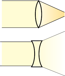 चित्र 15.22 (a) उत्तल लेंस तथा (b) अवतल लेंस