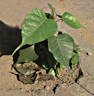 पहेली को याद आया कि उसने अपने विद्यालय की पार्श्व दीवार पर पीपल का एक पौधा उगा हुआ देखा था (चित्र 17.12)। क्या आप यह समझने में उसकी सहायता कर सकते हैं कि वह वहाँ कैसे उग आया?अब लगभग दोपहर हो गई थी और बच्चे वापस जाना चाहते थे। टीबू ने वापस जाने के लिए एक