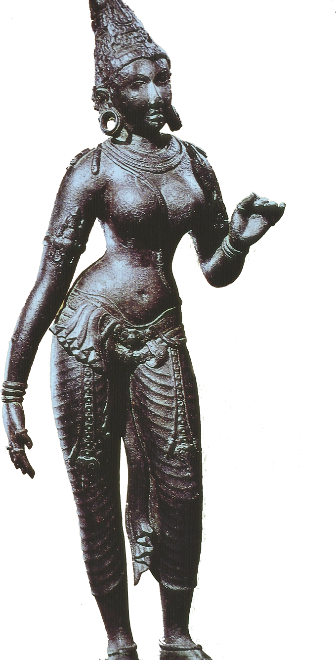 एक चोल कांस्य प्रतिमा। कितनी सावधानी के साथ उसे अलंकृत किया गया है, इस पर गौर कीजिए। एेसी प्रतिमाएँ किस तरह बनाई जाती थीं, यह जानने के लिए अध्याय 6 देखिए।