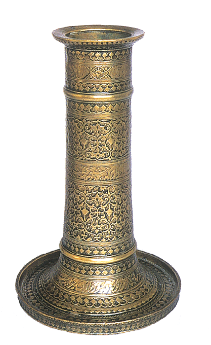 पीतल के इस मोमबत्तीदान पर काला आवरण है।