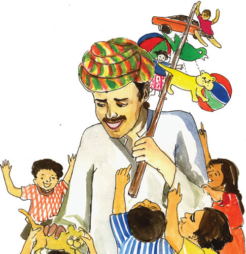 बहुत ही मीठे स्वरों के साथ वह गलियों में घूमता हुआ कहता- "बच्चों को बहलानेवाला, खिलौनेवाला।"