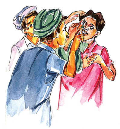 - घमंडी की आँख से तिनका निकालने के लिए उसके आसपास लोगों ने क्या किया?