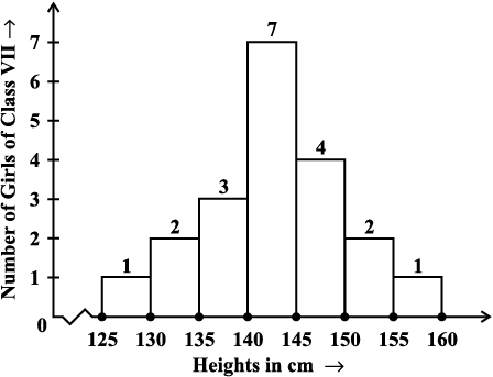 Is this graph in any way different from the bar graphs which you have drawn in Class VII? Observe that, here we have represented the groups of observations (i.e., class intervals) on the horizontal axis. The height of the bars show the frequency of the class-interval. Also, there is no gap between the bars as there is no gap between the class-intervals.