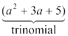 Examples of trinomials: a + b + c, 2x + 3y – 5, x2y – xy2 + y2, etc.