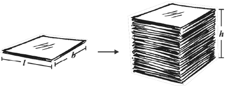 Take a sheet of paper. Measure its area. Pile up such sheets of paper of same size to make a cuboid