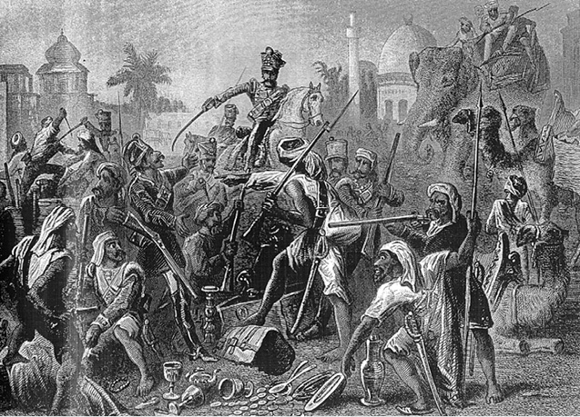 Images need to be carefully studied for they project the viewpoint of those who create them. This image can be found in several illustrated books produced by the British after the 1857 rebellion. The caption at the bottom says: “Mutinous sepoys share the loot”. In British representations the rebels appear as greedy, vicious and brutal. You will read about the rebellion in Chapter 5.