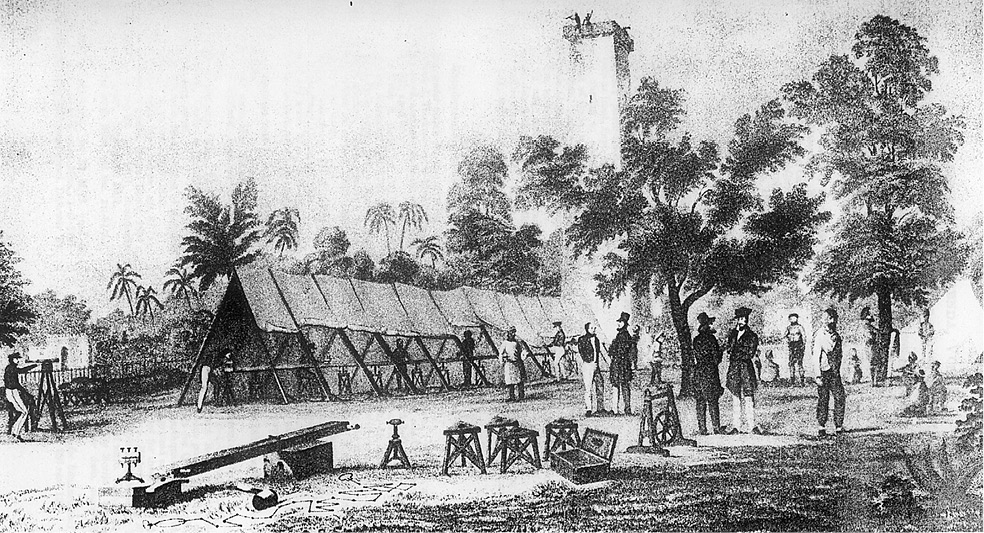 Fig. 6 – Mapping and survey operations in progress in Bengal, a drawing by James Prinsep, 1832 Note how all the instruments that were used in surveys are placed in the foreground to emphasise the scientific nature of the project.