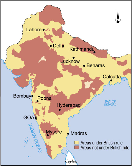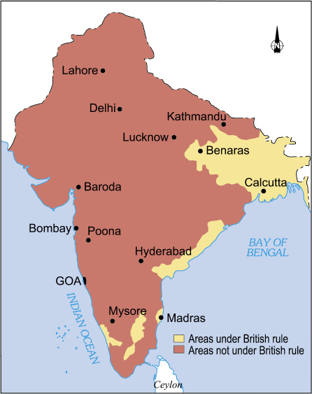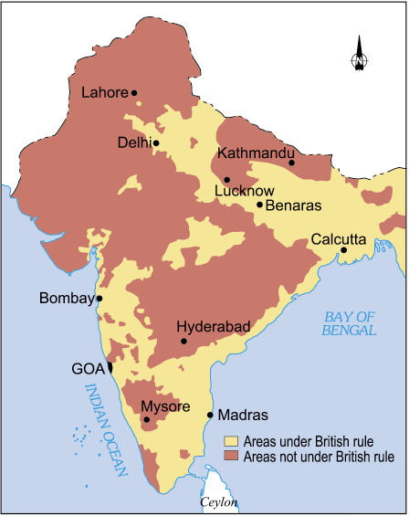 By 1857 the Company came to exercise direct rule over about 63 per cent of the territory and 78 per cent of the population of the Indian subcontinent. Combined with its indirect influence on the remaining territory and population of the country, the East India Company had virtually the whole of India under its control.