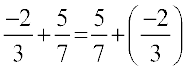 आप पाते हैं कि दो परिमेय संख्याओं को किसी भी क्रम में जोड़ा जा सकता है। हम कहते हैं कि परिमेय संख्याओं के लिए योग क्रम विनिमेय है। अर्थात् किन्हीं दो परिमेय संख्याओं a तथा b के लिए a + b = b + a ।