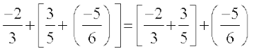 | योग | क्या (–2) + [3 + (– 4)] = [(–2) + 3)] + (– 4) है? क्या (– 6) + [(– 4) + (–5)] = [(– 6) +(– 4)] + (–5)है? किन्हीं तीन पूर्ण संख्याओं a, b तथा c के लिए a + (b + c) = (a + b) + c | योग साहचर्य है। |