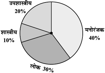 4. संलग्न पाई चार्ट एक विद्यार्थी द्वारा किसी परीक्षा में हिंदी, अंग्रेज़ी, गणित, सामाजिक विज्ञान और विज्ञान में प्राप्त किए गए अंकों को दर्शाता है। यदि उस विद्यार्थी द्वारा प्राप्त किए गए कुल अंक 540 थे, तो निम्नलिखित प्रश्नों के उत्तर दीजिए :