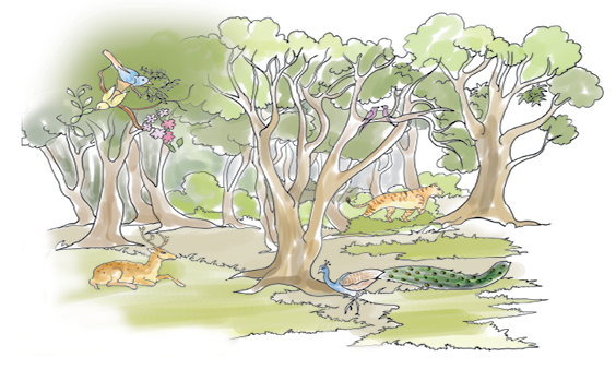 7. अत्र चित्रं दृष्ट्वा संस्कृतभाषया पञ्चवाक्येषु प्रकृतेः वर्णनं कुरुत–
