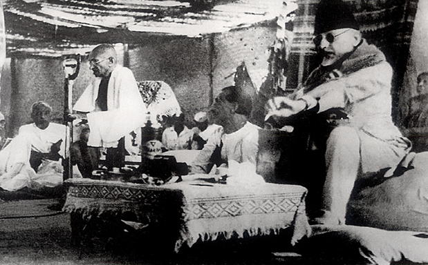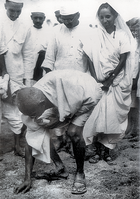 xkaèkhth vkSj muosQ vuq;k;h lkcjerh ls 240 fdyksehVj nwj fLFkr nkaMh rV iSny pydj x, vkSj ogk¡ mUgksaus rV ij fc[kjk ued bdV~Bk djrs gq, ued dkuwu dk lkoZtfud :i ls mYya?ku fd;kA