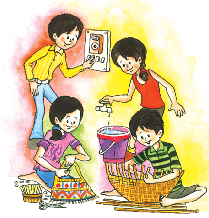 "मैं ध्यान रखूँगा कि मेरे घर में विद्युत व्यर्थ न हो," मुस्तफ़ा ने ज़ोर से कहा, "विद्युत जल और कोयले से मिलती है।" "मैं विश्वास दिलाती हूँ कि घर में जल बेकार नहीं होगा। जल की एक-एक बूँद मूल्यवान है," आशा ने कहा। बच्चों ने कहा "हम सब मिलकर अन्तर ला सकते हैं।"