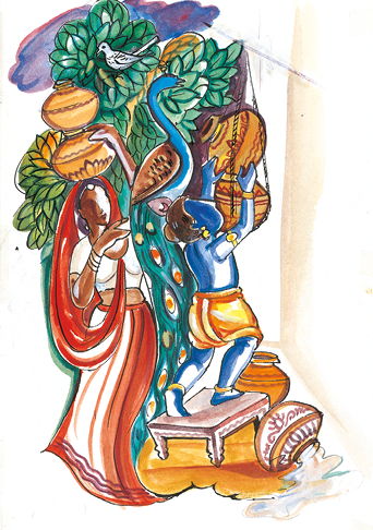 5. मक्खन चुराते और खाते समय श्रीकृष्ण थोड़ा-सा मक्खन बिखरा क्यों