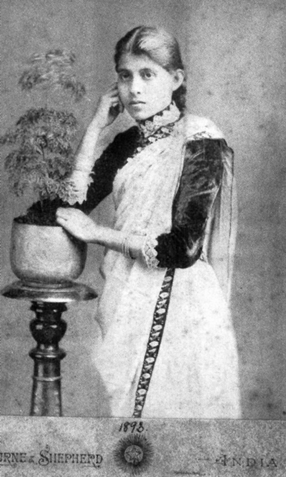 Fig.18 – Sarala daughter of RC Dutt. Note the Parsi-bordered sari with the high collared and sleeved velvet blouse showing how clothing styles flowed across regions and cultures.