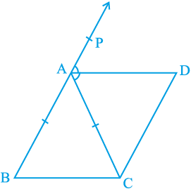 [संकेत : AB को बढ़ाइए और C से होकर DA के समांतर एक रेखा खींचिए जो बढ़ी हुई भुजा AB को E पर प्रतिच्छेद करे।]