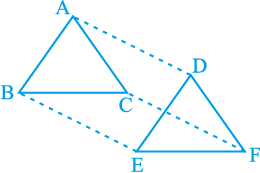 11. ∆ ABC और ∆ DEF में, AB = DE, AB || DE, BC = EF और BC || EF है। शीर्षों A, B और C को क्रमश: शीर्षों D, E और F से जोड़ा जाता है (देखिए आकृति 8.22)। दर्शाइए कि