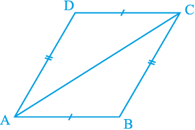 मान लीजिए चतुर्भुज ABCD की भुजाएँ AB और CD बराबर हैं और साथ ही AD = BC है (देखिए आकृति 8.9)। विकर्ण AC खींचिए।
