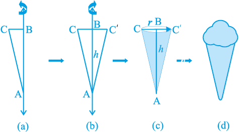 6. शंकु का कुल पृष्ठीय क्षेत्रफल = πrl + πr2, अर्थात् πr (l + r)