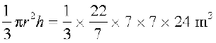 5. ऊपरी व्यास 3.5 m वाले शंकु के आकार का एक गढ्ढा 12 m गहरा है। इसकी धारिता किलोलीटरों में कितनी है?