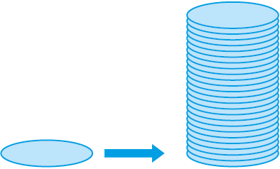यदि हम कागज की अनेक वृत्ताकार शीट लें और उन्हें उसी प्रकार एक के ऊपर एक रखकर एक उर्ध्वाधर ढेरी बनाएँ जैसी पहले आयताकार कागज की शीटों से बनाई थी, तो हमें क्या प्राप्त होगा (देखिए आकृति 13.6)?