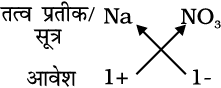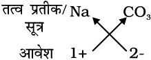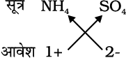 • आयनिक यौगिकों में, प्रत्येक आयन के ऊपर आवेशों की संख्या द्वारा यौगिक के रासायनिक सूत्र ज्ञात करते हैं।