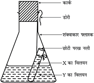 चित्र 3.1: Y के विलयन युक्त शंक्वाकार फ्लास्क में डूबी हुई X के विलयन युक्त छोटी परख नली।