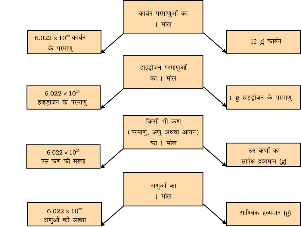 (iii) कणों (परमाणु) की संख्या = कण के मोलों की संख्या × आवोगाद्रो संख्या