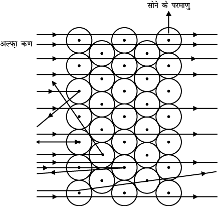 चित्र 4.2: सोने की परत द्वारा अल्फ़ा कणों का प्रकीर्णन
